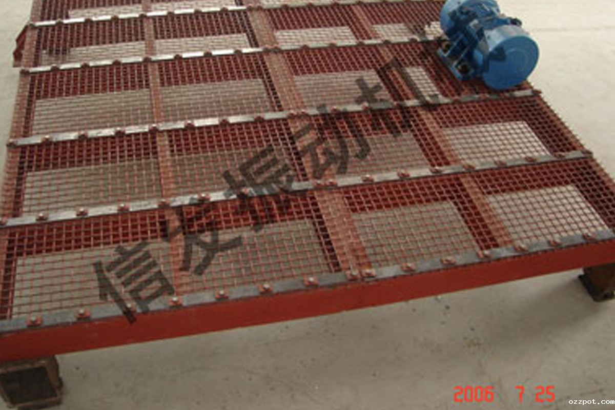 振动篦板是一个高频振动的格栅,将其放置在矿槽上部,可防止因冻结或锈结成大团的屑状或块状物料进入矿槽,否则大块物料会在矿槽下部造成堵塞。由于格栅的高频振动,在防止大块物料进入矿槽的同时,屑状、块状的正常粒度物料能迅速落入矿槽,不会在格栅上堆积,对一些粘结强度不大的结块还能起松散、碎块作用,是较理想的矿槽上部设备。振动篦板还可用于铸件的落砂等其他用途。