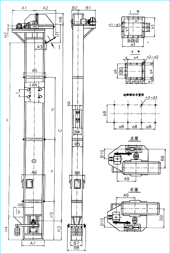 我公司生产的斗式提升机具有输送量大,提升高度高,运行平稳可靠,寿命长显著优点,本提升机适于输送粉状,粒状及小块状的无磨琢性及磨琢性小的物料,如:煤、水泥、石块、砂、粘土、矿石等,由于提升机的牵引机构是环行链条,因此允许输送温度较高的材料(物料温度不超过250 ℃)。一般输送高度可达40米。TG型可达80米。